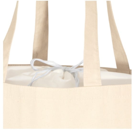 口がファスナーでなく、紐でしばる巾着タイプなので開け閉めも簡単。