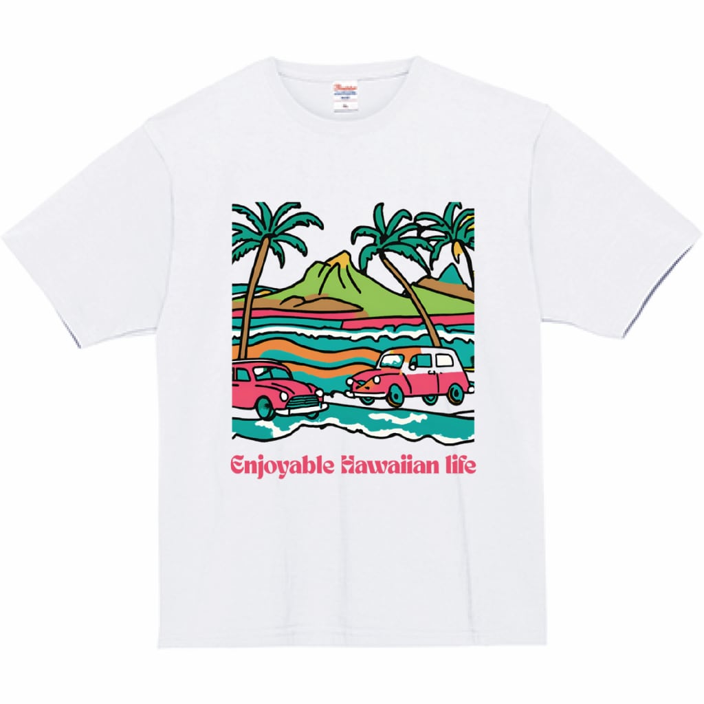 好評のEnjoyable Hawaiian life SERIESは、ユニークと楽しさが詰まったTシャツです。ユニークなデザインは、周りからの注目の的になること間違いなしです。適度な厚みとハリのある生地(7.4oz)、頑丈さと着心地の良さで、生地の目が詰まっていることでなめらかな肌さわりのよいTシャツです!